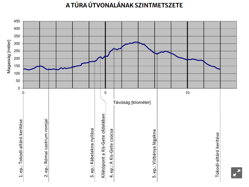 A kör lehetőséget ad arra, hogy felkeresd és bebarangold a Kerék-hegy, a mai térképeken Kis-Gete területét, ami a Tokod környéki bányászat első helyszíne volt. Felfedezheted a Gete környezetét és felkeresed a Vízbánya szellőző aknáját, ahol beleszagolhatsz milyen is egy bánya levegőjének illata. Váltakozva haladsz erdei és mezei utakon. A Kerék-hegy dombhátján haladva végig remek a kilátás. Ha nem csak kirándulni szeretsz, akkor előzetes bejelentkezés után felkeresheted a Tokodi Ásvány és Ősmaradvány Múzeumot. Telefonszám: +36-30-270-1929 A kör bejárásával valamint a Múzeum, a Trafóház valamint a művelődési ház.megtekintésével tartalmas napot tölthetsz el Tokodaltárón..